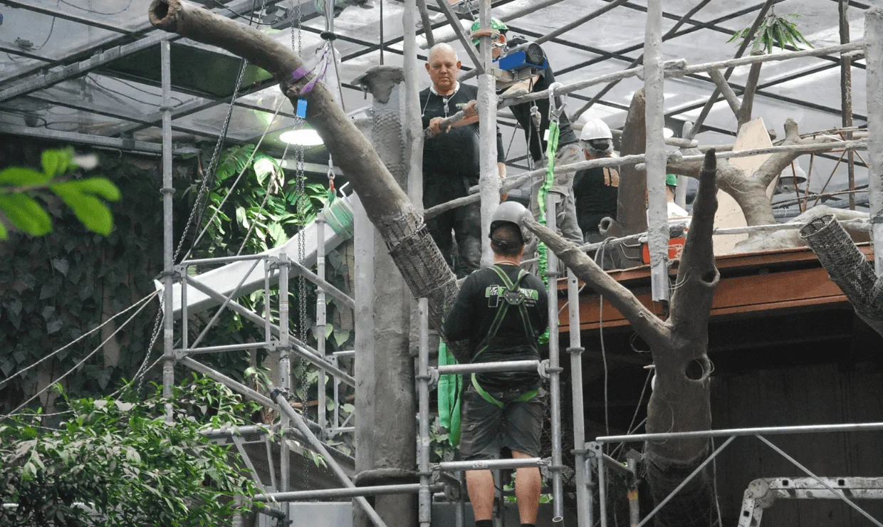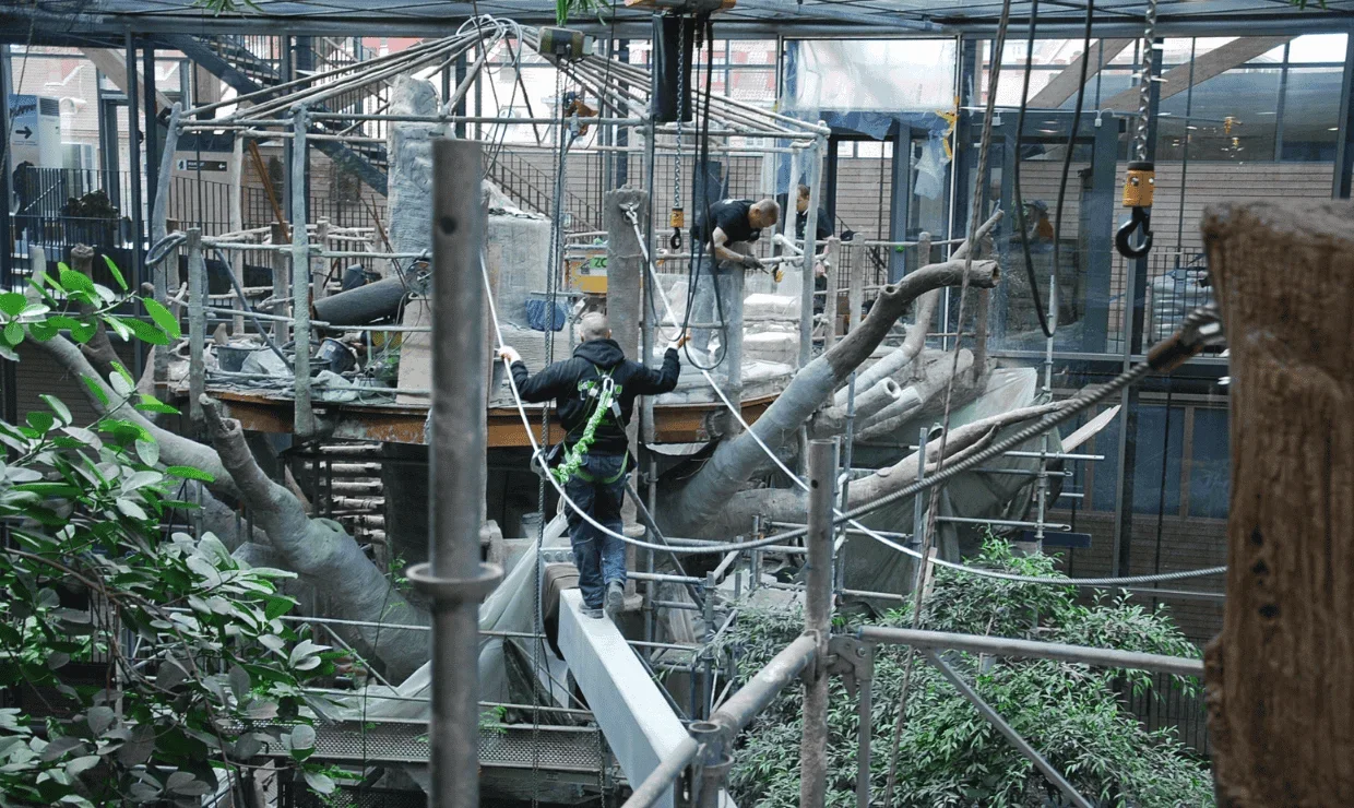 25 meter høyt bråtrodtre laget i dekorasjonsbetong til Universeum i Gøteborg.