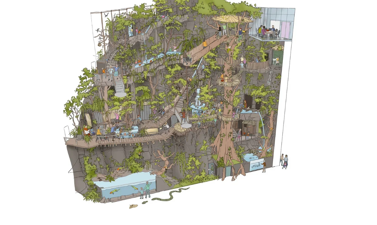 Opplev dette 25 m høye bråtrodtreet i Universeums regnskogsutstilling. Treet er designet av Zooply og inngår som en naturlig del av utstillingen i regnskogen. På ruten rundt i regnskogen vil du flere ganger bli ført gjennom eller rundt treet via hengebroer, innvendige og utvendige trapper. Treet gir Universeums gjester mulighet til å få en enestående utsikt over regnskogen og komme i øyehøyde med de tropiske fuglene som beveger seg i tretoppene.