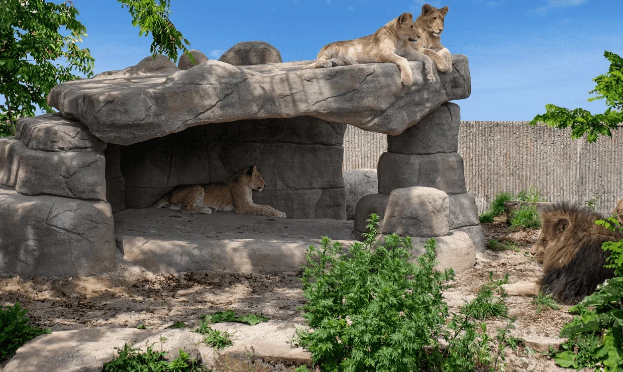 I tillegg fikk løvene et sted hvor de kunne ligge i skjul for vind og vær, og den nye klippehulen har til og med innebygd gulvvarme, slik at løvene kan ligge varmt og godt også om vinteren.
