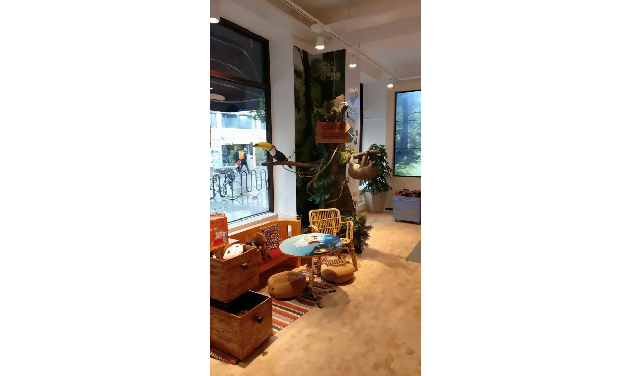 Dette kunstige bråtrodtreet med tukan og dovendyr er laget som utstilling til Göteborg turistkontor.